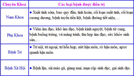 Như các bạn đã biết, hiện tại phòng khám đang điều trị 4 chuyên khoa chính sau đây: